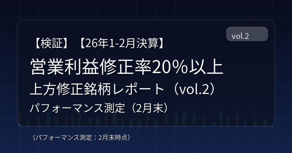 【検証】【26年1-2月決算】営業利益修正率20%以上 上方修正銘柄レポート(vol.2)_パフォーマンス測定(2月末)