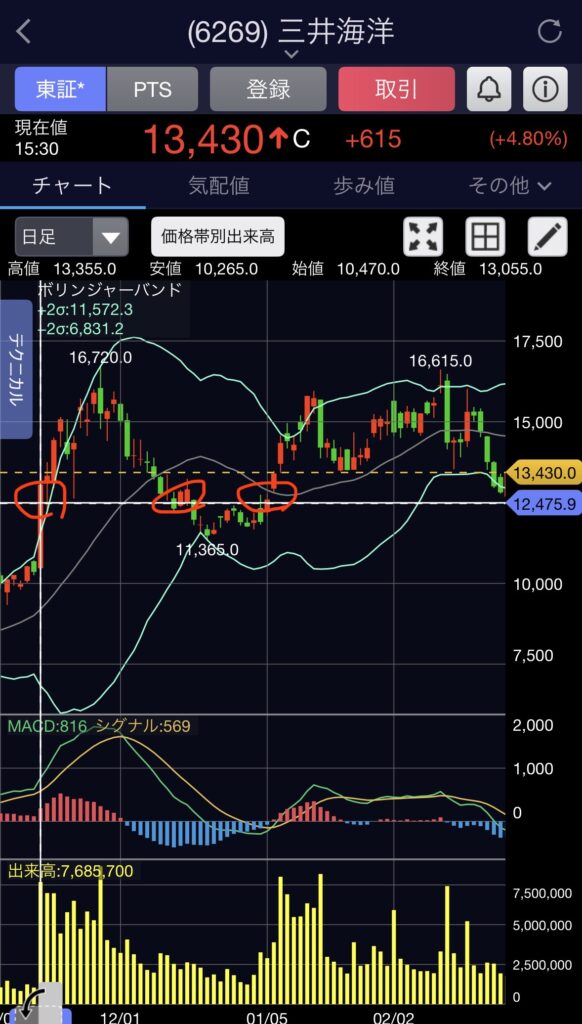 基本的に「短期で騰がる銘柄は短期で下がる、毎日少しずつ騰がる銘柄は短期で下がらない」と考えると、利確のヒントがそこにありそうです。